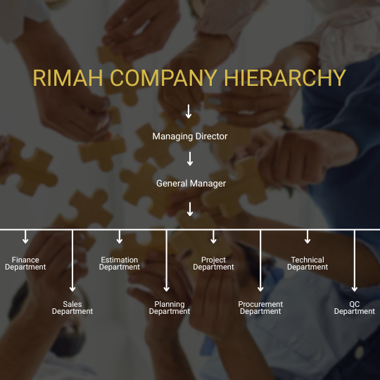 At Rimah Al-Shrq Factory for Industries, we operate with a well-defined organizational structure that ensures efficiency, accountability, and smooth coordination across all functions. Under the leadership of our Managing Director and General Manager, our departments—Finance, Sales, Estimation, Planning, Projects, Procurement, Technical, and Quality Control—work collaboratively to deliver exceptional products and services that meet global standards.